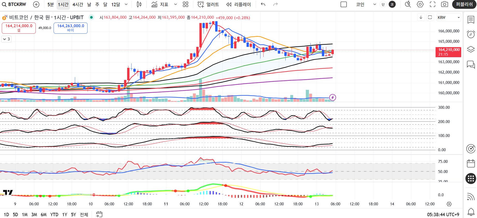 • 주요 저항선: 164,500,000원 / 165,000,000원