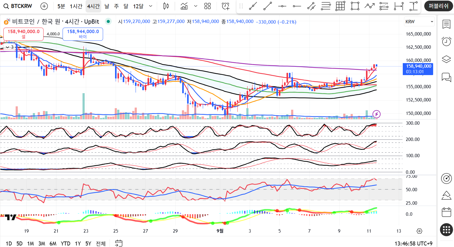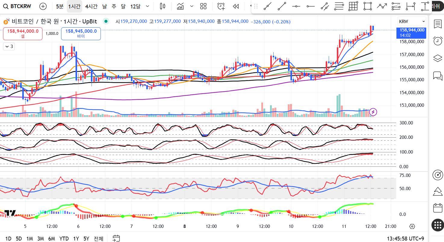 - 당일 가격대 : 고가 159,277,000원 / 저가 158,940,000원