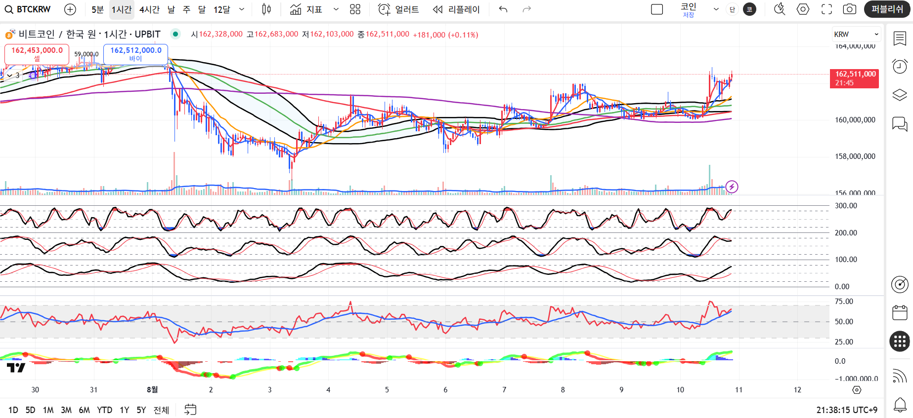 - MACD : 골든크로스 유지, 단기 모멘텀 살아있음